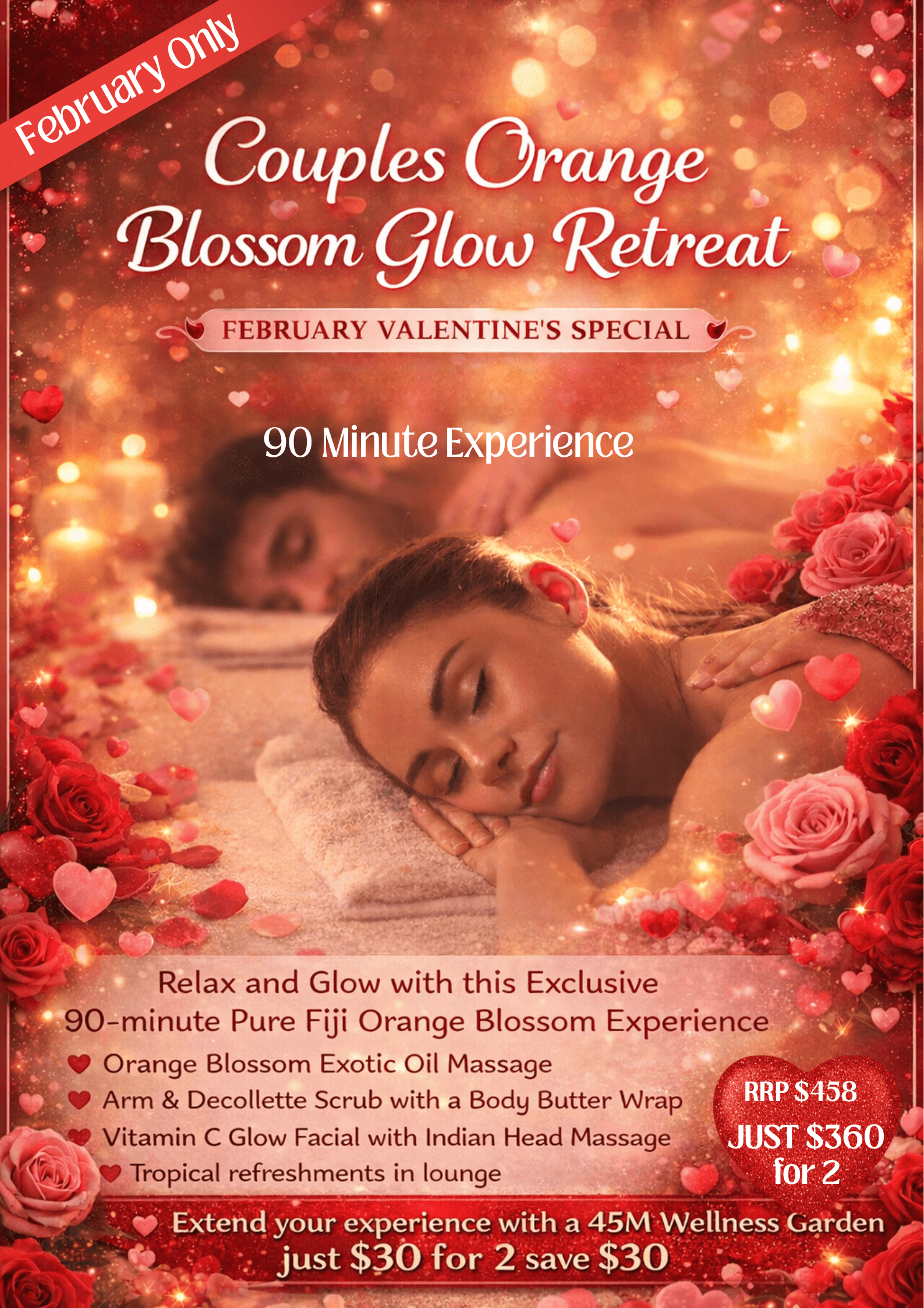 .Bring a loved one or a friend and enjoy our insanely popular Orange Blossom Glow Retreat (limited edition Pure Fiji Fragrance)