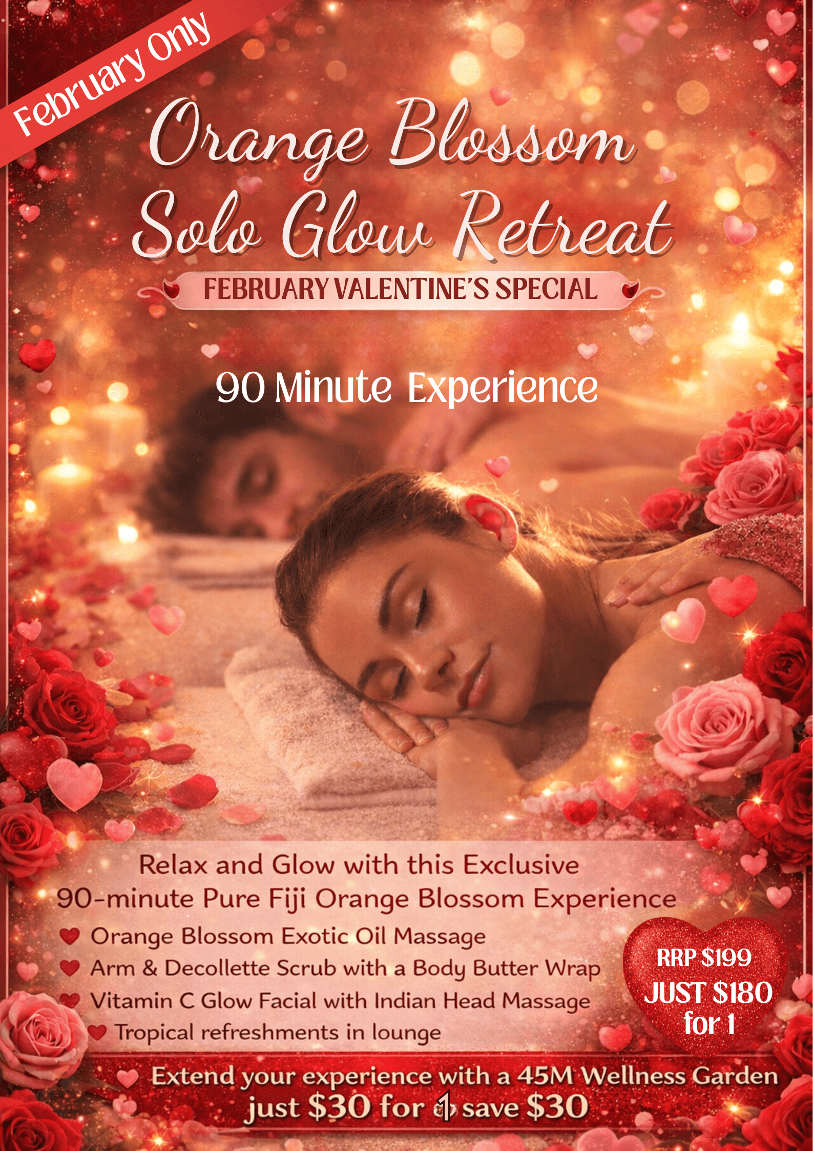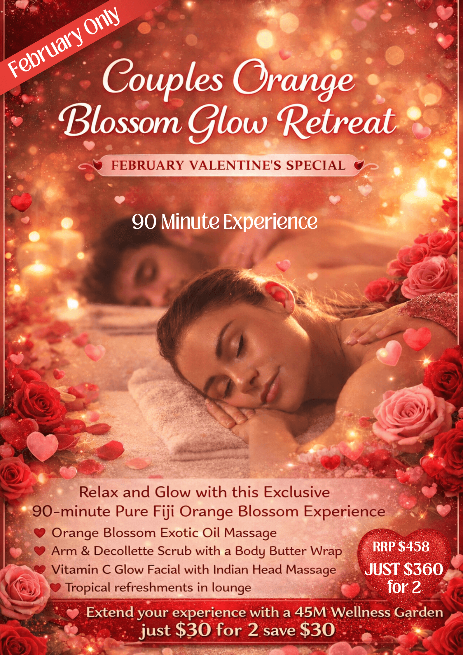 Escape this February with our Orange Blossom Glow Retreat — a beautifully indulgent 90-minute Pure Fiji experience created just for you